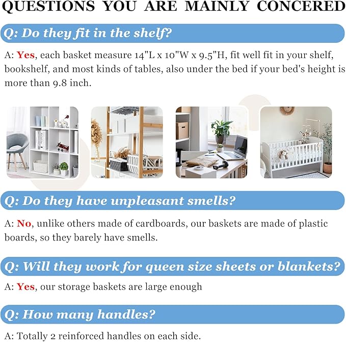 - 【MULTI-PURPOSE】 Our 6 pcs closet storage bins are home essentials to save storage space and keep everything organized. Large enough baskets for organizing clothes, kid’s toys, nursery room items, extra linens, laundry, towels, sheets, pantry and more.