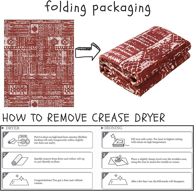 - ✨ WASHABLE RUG: Protecting rugs from spills is nearly impossible, especially you have a child, a pet, or one of the messier hobbies. Use vacuum cleaner, broom, or wipe for daily cleaning to prevent dust and crumbs from setting into the fibers. if excess liquid remains or dirt on the surface of the rug and you want your rug to to be thoroughly clean, Machine wash with cold water on gentle cycle(not to add bleach),air dry or dry on air-only cycle with out heat.