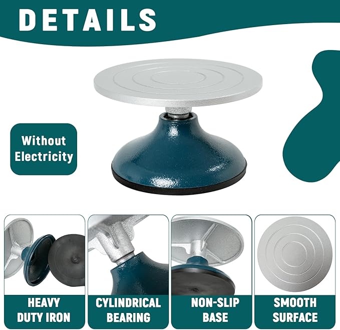 - Multi-Functional Manual Rotation: DUPDMKIN pottery wheel offers the versatility of manual rotation for detailed artwork without relying on electricity. Featuring a solid base, non-slip surface, and easy mobility, this banding wheel is perfect for painters, sculptors, and decorators.