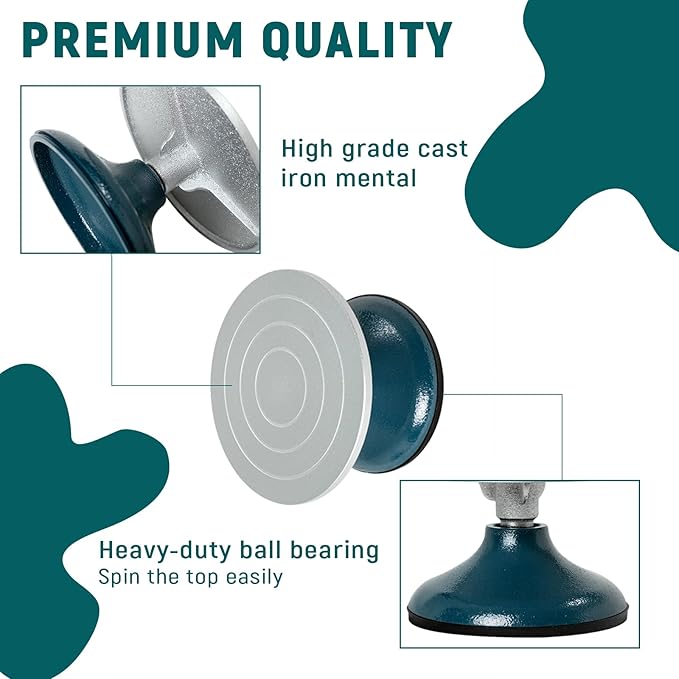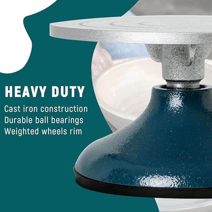 - Robust Construction for Stability: This pottery wheel is crafted with high-grade, nearly indestructible iron, both the base and top of our banding wheel are heavy-duty. The top features a heavy-duty ball bearing for smooth spinning, supporting up to 40 lbs of creative work.