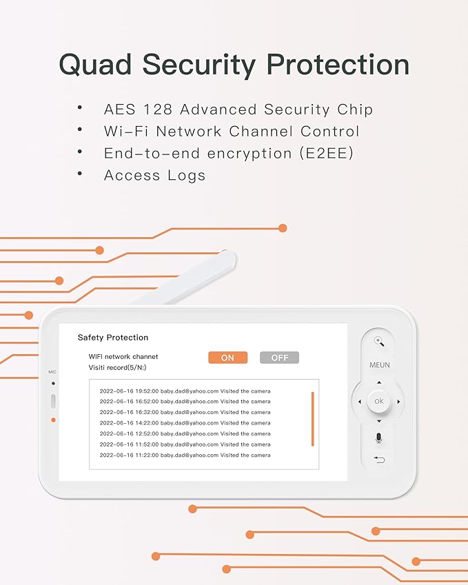 - Clear Two-Way Audio & Friendly Features - Baby monitor with camera has a built-in mic and speaker for smooth talk with your baby or pets anytime, anywhere. You can also play soothing lullabies. It can also play soothing lullabies and includes features like VOX mode, nursing reminders, and One-Touch Calls. You can manage all your baby monitors through one app and share access with family or friends, with the option to revoke sharing at any time.