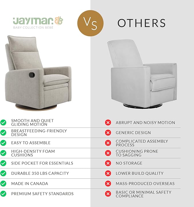 - DESIGNED FOR MODERN SPACES: This chair is ideal for recliners for small spaces like nurseries or small rooms. This nursery glider boasts silent 360° swivel motion, ensuring quiet operation for peaceful moments