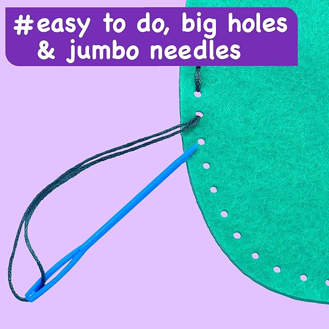 - 🌟No Mess, Easy-to-Follow Instructions🌟This sticker kit provides a mess-free crafting experience, including Step-by-step instructions and basic sewing skill brief, pre-punched holes, pre-cut shapes and jumbo plastic needles that prioritize children's safety without sacrificing their joy.