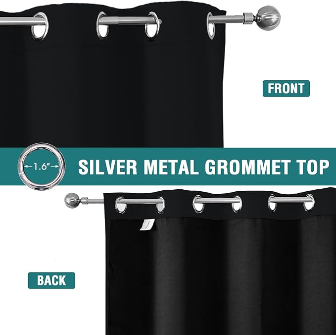 - SET DETAILS: Set of 2 total blackout curtain panels per package. Each lined curtain measures 52 inch wide by 80 inch long with 8 silver metal grommets (1.6 inch inner diameter) on top, easy to install and slide.
