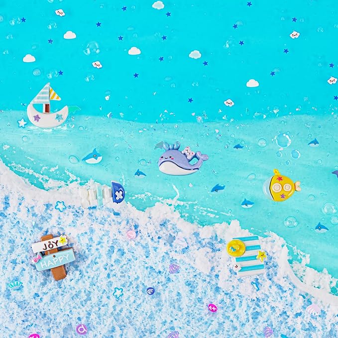 - ๐ใGradual Blue & Various Add-insใThis blue ocean slime kit is ocean themed, graduating from white to dark blue and contains 8 slime add-ins. Whether you want to make crunchy slime, fluffy snowflake slime or smooth butter slime, paired with a variety of adorable slime charms to create your own one-of-a-kind slime creations, this kids slime has everything you need.