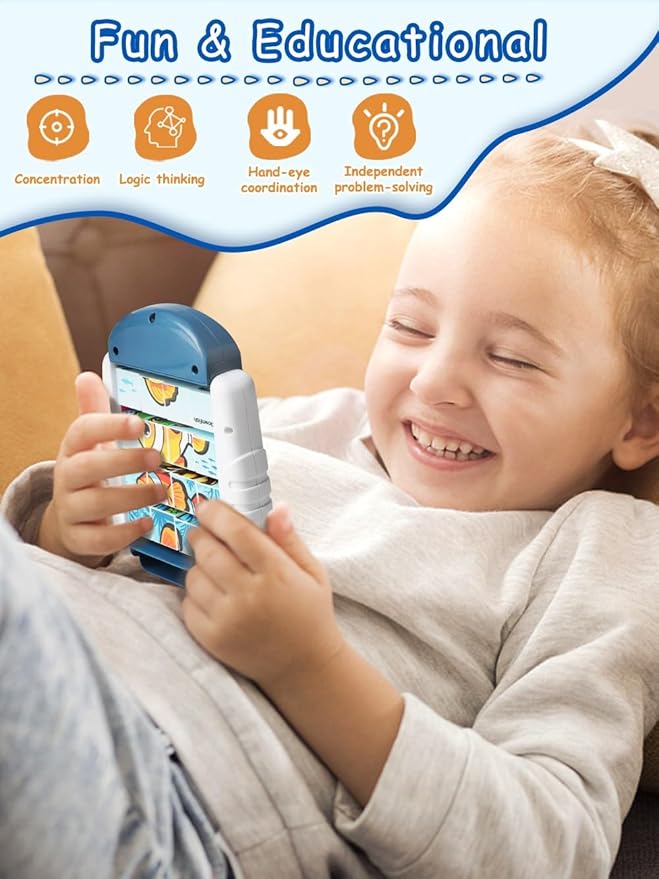 16-Piece Rotating Puzzles for Kids 4-6, Toddlers Puzzles 2-4, Road Trip, Airplane Activities Game, Travel Toys - Brain Teaser, Fine Motor Skills - Birthday Gifts Boys & Girls - Marine Life