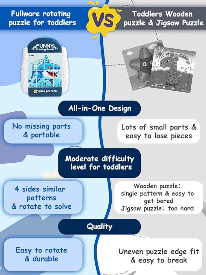 - A HANDY TOY FOR OUTINGS - Whether in the car or at a restaurant, our compact Rotating Puzzles can be carried along and keep children quiet and occupied. Moreover, there is no risk of missing pieces after playing with this all-in-one design puzzle!