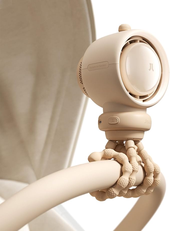 JISULIFE Stroller Fan Baby Large, Safe Bladeless for Crib, Desk, Portable Battery Rechargeable Cooling Fan with Air Turbo Tech, Night Light, Food-Grade Gift for Mom/Dad/Friend - Brown