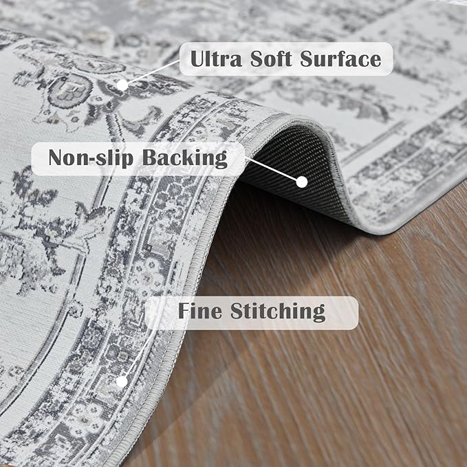 jinchan Runner Rug 3x8-2pcs Kitchen Washable Vintage Rug Hallway RugFloral Print Floor Cover Indoor Thin Retro Mat Accent for Bathroom Laundry Room Bedroom Office Farmhouse (Double,Grey)