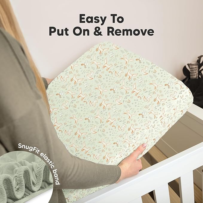 - Easy To Put On - Our baby sheets for crib use SnugFit Tech, a smart fabric knit that stretches effortlessly for quick fitting and removal of the toddler bed sheets. No more struggling with rigid fabric!