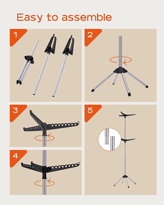 - [Easy to assemble and carry] This drying rack can be installed in just four steps and can be completed within three minutes. The easy to disassemble and assemble design makes it possible for you to carry it with you when you need to dry your clothes on a camping trip.
