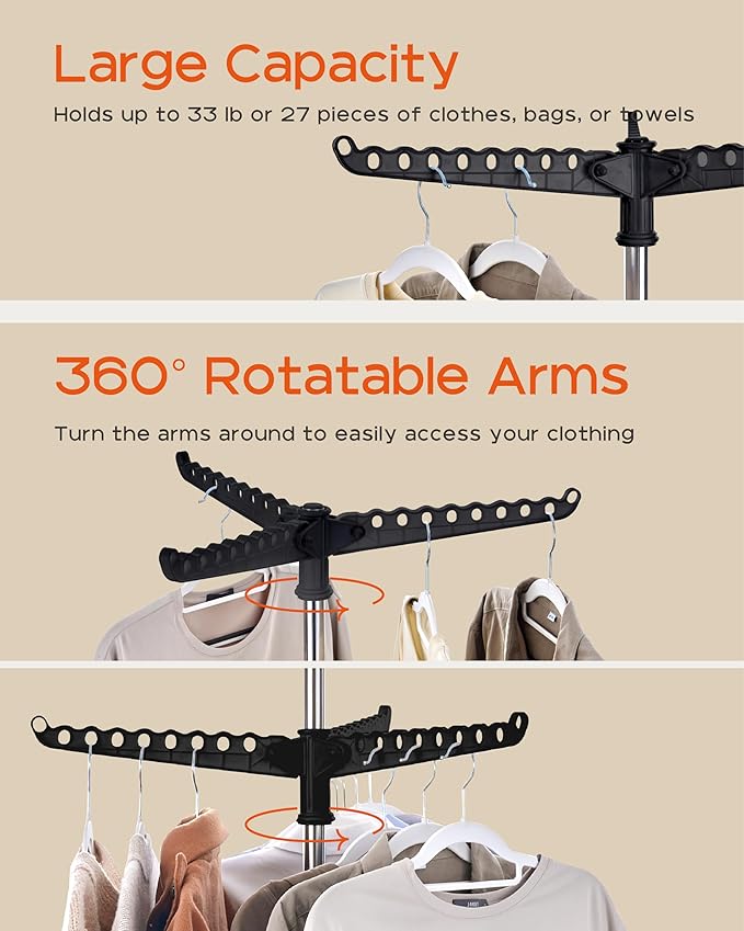 - [360 Rotating Clothes Rack] Equipped with a 360-degree swivel design, this laundry drying rack provides you with the convenience of hanging and accessing your clothes.