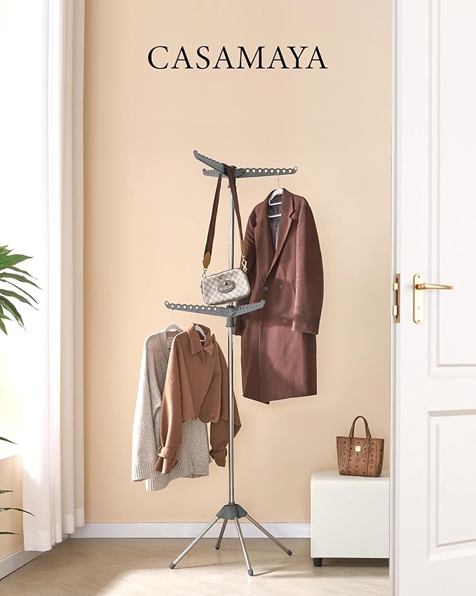 - [Strong and Durable] This clothes drying rack is made of thick stainless steel tubing, rust-proof and sturdy, four support feet design provides the best stability, overall weight capacity 66 pounds