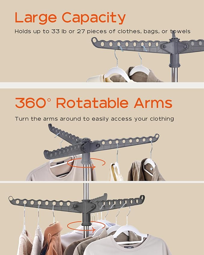 - [360 Rotating Clothes Rack] Equipped with a 360-degree swivel design, this laundry drying rack provides you with the convenience of hanging and accessing your clothes.