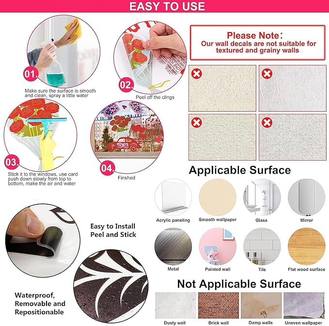 - 🐻【Easy to use】This decal is convenient to use.Just peel them off carefully and stick them on the smooth,clean,dry and dust-free surfaces with your hands.