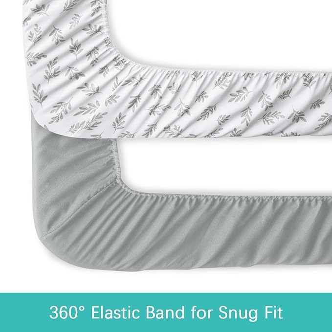 Crib Sheets 4 Pack for Baby Boys & Girls, Neutral Crib Sheet Fitted 52'' x 28'' for Standard Crib & Toddler Mattress, Ultra Soft Material Baby Sheet, Grey Leaf