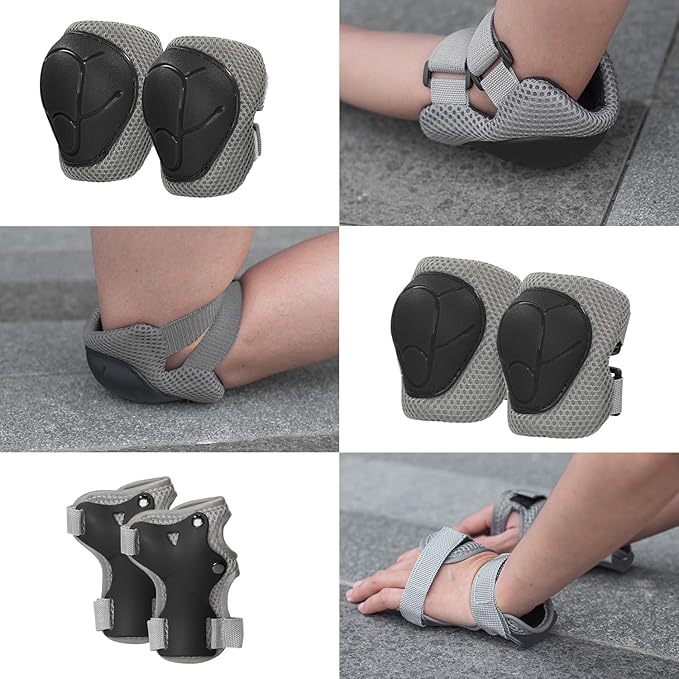 - 7PCS Kids Helmet and Protective Gear Set - Includes 1 adjustable helmet, 2 knee pads, 2 elbow pads, and 2 wrist guards—everything your child needs for safe riding. Built with a tough, scratch-resistant PP shell and cushioned interiors for long-lasting protection and comfort.