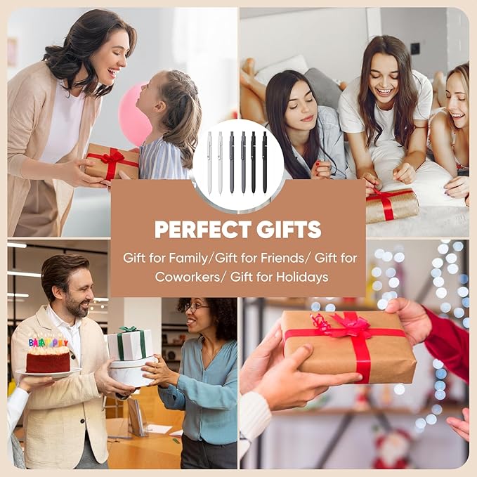 Easter Basket Stuffers for Men, College School Supplies, 0.5mm Black Ink Pens for Journaling, Cool Stuff Gifts for Dad Boyfriend, Birthday Gifts for Men, Valentines Stuff (6pcs Black Gray White)