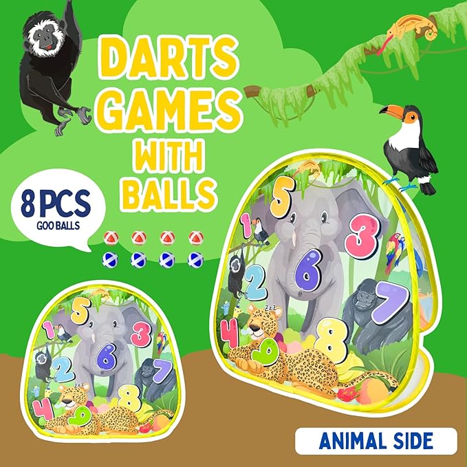 2-in-1 Dinosaur & Animal Bean Bag Toss Game – Double-Sided 27" Target Board with 6 Bean Bags – Outdoor & Indoor Toy for Toddlers & Kids Ages 3-6 – Birthday Gift - Amazon Exclusive