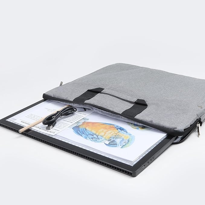 - <𝗖𝗮𝗿𝗿𝘆 𝗕𝗮𝗴&𝗘𝗮𝘀𝘆 𝗖𝗮𝗿𝗿𝘆𝗶𝗻𝗴 𝗗𝗲𝘀𝗶𝗴𝗻>: The light tracing pad, with its dimensions of L16.2''×W12.1''×H0.4'', ensures portability, easily fitting into bags or backpacks for convenient transport. Additionally, it comes with carrying case upon purchase, offering added convenience for storage and travel, making it convenient for artists, designers, and students to carry it wherever they go.
