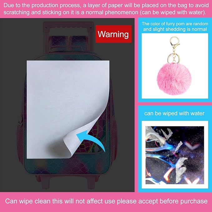 - Girls Rolling Backpack Set: Urable wheels with low noise, comfort and soft handle, smooth and durable zipper provide you a relaxed and happy fulfillment. This cat backpack with whells brings more joy to kids.