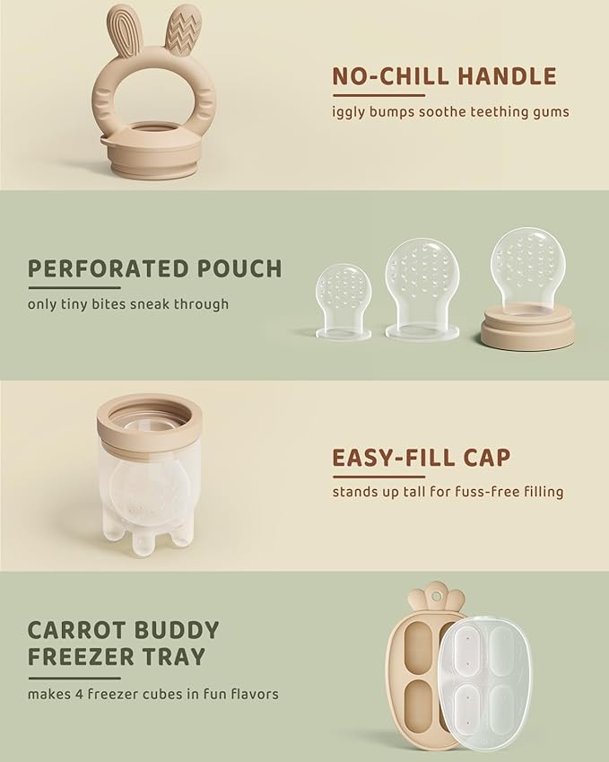 - 【100% Food Grade Silicone】The complete freeze-n-feed teether combo is made of BPA free silicone with no small parts to provide a pleasant feeding experience. Our feeder set exceeds all government safety regulations and standards for parents' peace of mind.
