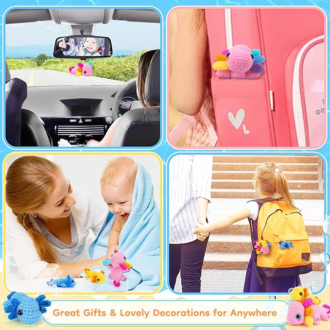 - 😺【All-In-One Crochet Starter Kit】Auspicious beginning Axolotl crochet kit for beginners comes with everything you need to create adorable crochet animal kit: 3 Axolotl pattern. 2 basic crochet manual, 6 different colored yarns, 1 needle, 4 eyes, 5 stitch markers, 2 crochet hook, 1 sessor, beginner's step by step video and stuffing. As packaging all the necessary tools together in giftbox. It's save much time and effort to search for each component individually.