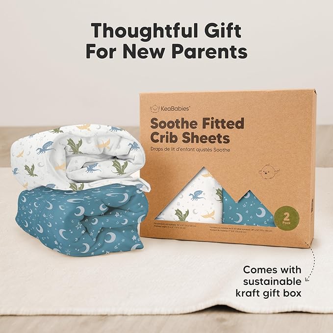 - 2-Pack Baby Crib Sheets - KeaBabies Soothe Fitted Crib Sheets for boys and girls; fit standard crib mattresses (52"x28" with height 3" to 8") perfectly, offering your baby a safe and restful sleep.