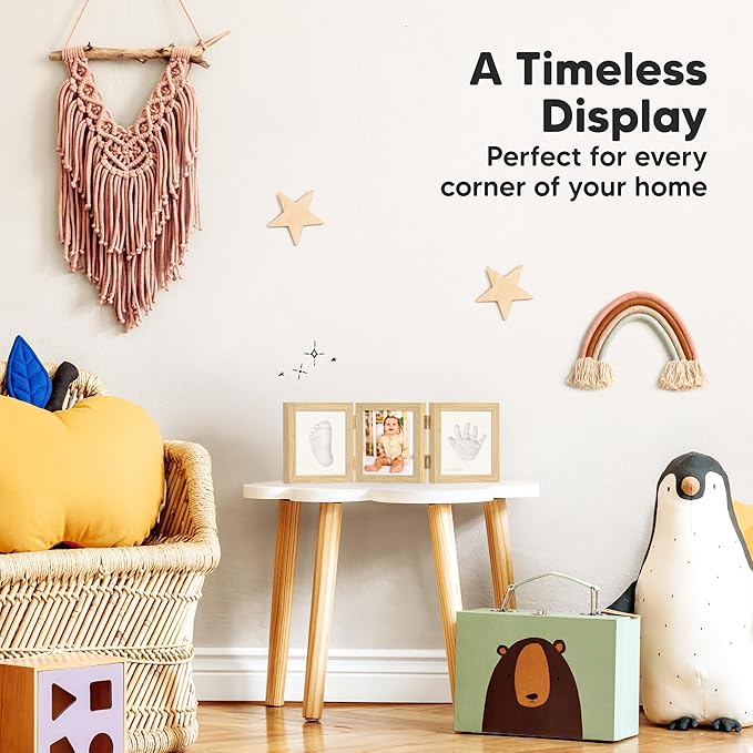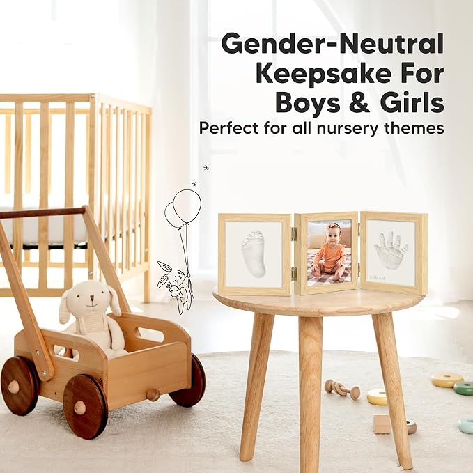 - Sturdy Wood Frame, Real Glass Cover - Our tri-fold baby handprint footprint keepsake kit maintains its pristine condition for years to come. It’s a lovely, everlasting newborn keepsake for your baby room decor. A must-have newborn baby essentials.