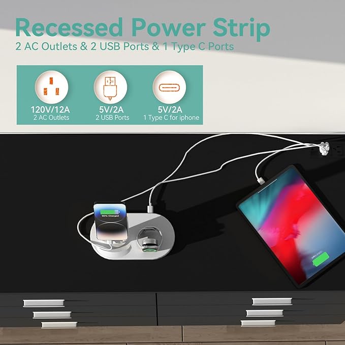 - ✔️【Power Outlet】FJTJBSI dresser with charging station has 2 AC outlets &2 USB ports & 1 Type C ports Easily charge your electronic devices without the need for extra cables.