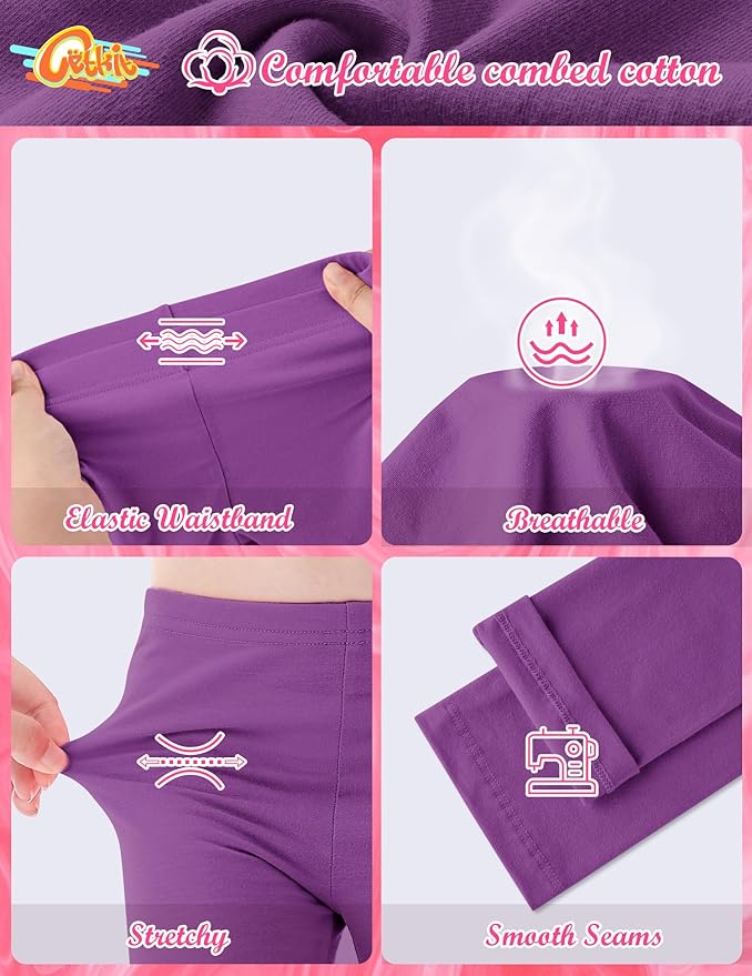 - 【High-Quality Girls Stretch Pants】 These girls purple leggings are made of 94% polyester and 6% spandex. The fabric is stretchy, ultra-soft, and breathable, making these girls' athletic leggings very comfortable and flexible. All leggings are made from premium four-way stretch fabric, with an elastic band sewn into the waistband, which lies flat on the waist for a comfortable and good fit.
