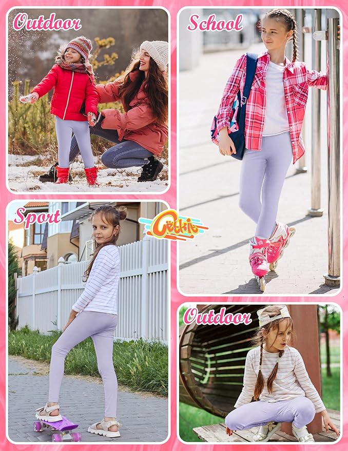 - 【Versatile Leggings】 These light purple leggings are non-see-through, tear-resistant, and will not develop holes or fade after washing. They are ideal for playing or exercising, everyday wear, dancing, yoga, sports practice, and playing in the park. These girls leggings size 7-8 allow your child to move freely and comfortably in any situation! Our kids' leggings pair well with t-shirts, sweatshirts, sneakers, and hoodies to easily create an impressive look.