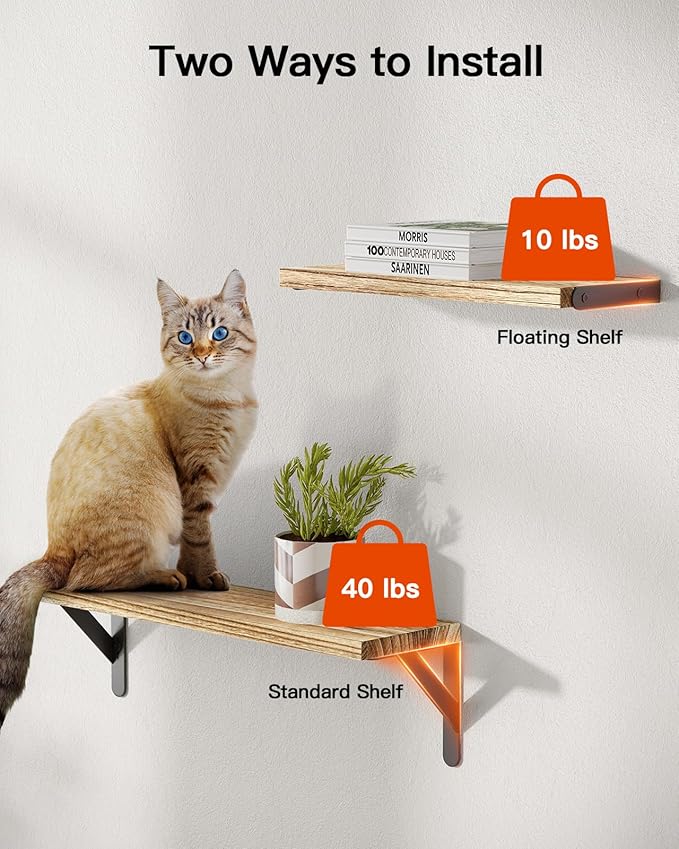 - Two Ways to Install: Attach to the wall as minimalist floating shelves for wall with concealed brackets (10 lbs Max load), or standard wall shelves with brackets below to support heavier objects (40 lbs Max load).