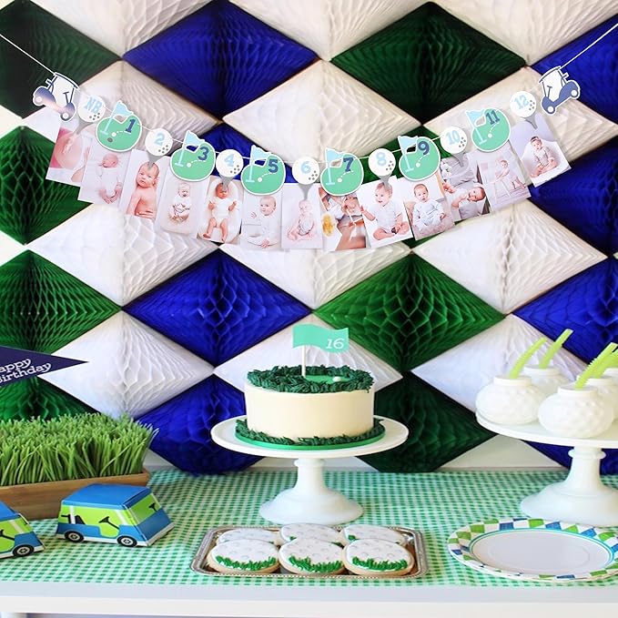 - Find Golf Decorations - This Eye-Catching Golf 1-12 Month Photo Banner Is Perfect For Decorating For Baby's First Birthday, And Can Also Be Used As A Photo Prop, Especially For Cake War Photos.
