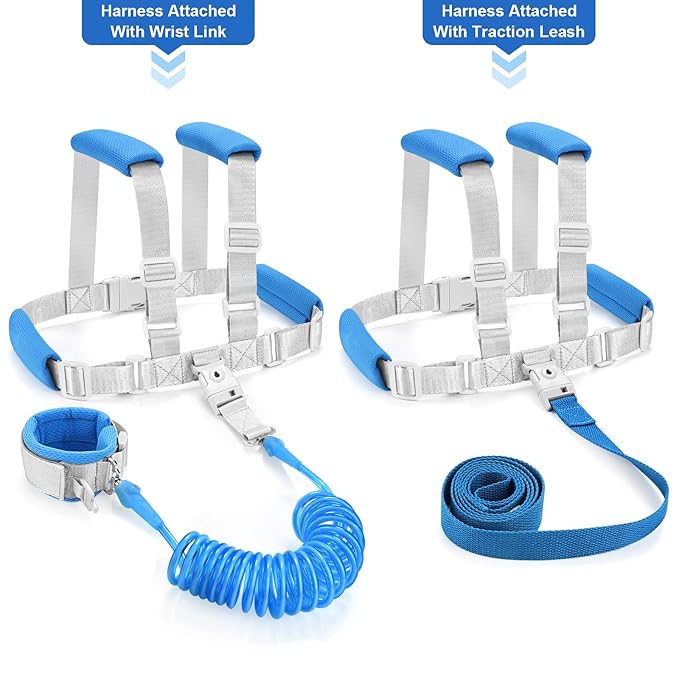 - 3 Different Usage: ①Children wearing as a harness with leash; ② Children wearing as a harness with anti lost wrist link; ③ Using the anti lost wrist link both on parent’s and kid’s hands. 3 different usages can meet your various DIY combination needs, suitable for all kinds of outdoor scenes. Multi-functional products can bring you wonderful buying experience