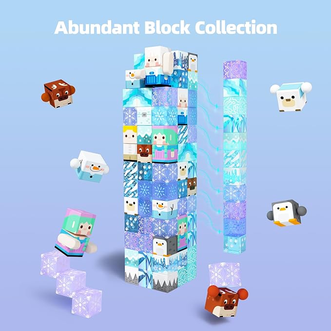 - Unique Patterns: GobiDex magnet blocks set includes 23 different icy themed magnetic blocks, suitable for kids 4-8. Toddlers can easily build mine magnet ice world, creating fun and imaginative play