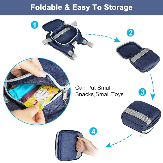 - Foldable & Reflective: There is a small pocket on the back of the harness, you can fold it when you donβt need it, which is very convenient to carry. The wrist link and tether are reflective, making it secure for children to go out at night