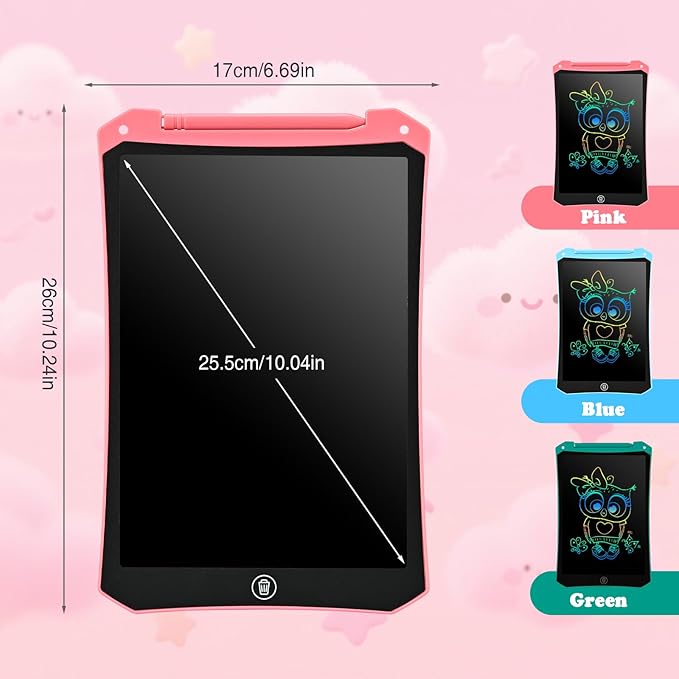 - Unleash Child's Imagination: The LCD writing pad provides 10 inches of space for your child to write and draw, unleashing your child's imagination. The colorful eye-protecting screen of the Doodle Board provides a better drawing experience and avoids damage to your child's eyes from prolonged use