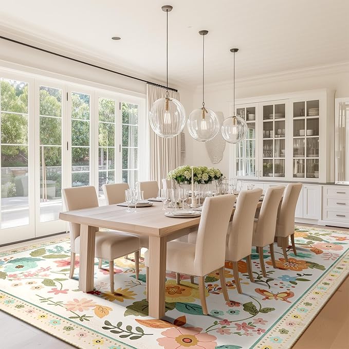 - Vintage Floral Design:This area rug combines floral,vintage,and boho elements,making it the perfect choice to complement any home decor.With its digitally printed design,the pattern and lines are gentle,while the colors are more vibrant.It can create a cozy and warm atmosphere in any room of your home