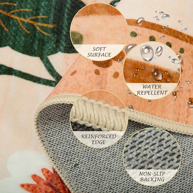 - Vintage Floral Design:This area rug combines floral,vintage,and boho elements,making it the perfect choice to complement any home decor.With its digitally printed design,the pattern and lines are gentle,while the colors are more vibrant.It can create a cozy and warm atmosphere in any room of your home