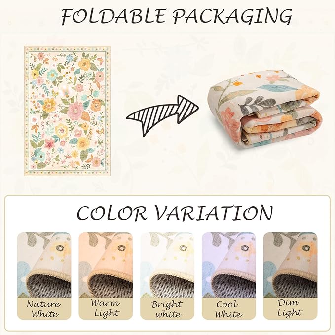 - Machine Washable:The bedroom rugs are machine washable,allowing for both machine wash and hand wash options.It is recommended to wash them in cold water.This floral rug is crafted with a low pile that won’t block opening and closing doors, make machine wash possible.Small stains can be blotted with a rag,soft-bristled brush,vacuum,or robotic vacuum cleaner.Avoid using bleach and high-temperature ironing