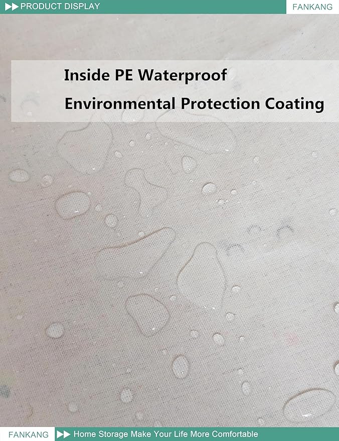 - Polyester canvas + flax + PE environmental protection waterproof coating+Handle, lightweight and portable.
