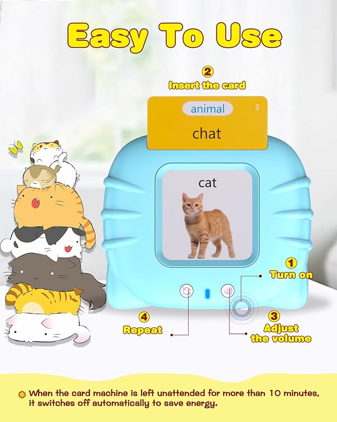 - 【Inspire & Enhance language skills】This talking flash cards design includes vivid colors and fascinating sounds that attract children's attention and promote their interest in learning. Ideal for sensory toys like autism sensory toys, this interactive device provides a unique sensory experience that captivates toddlers' minds and helps improve their speech development.