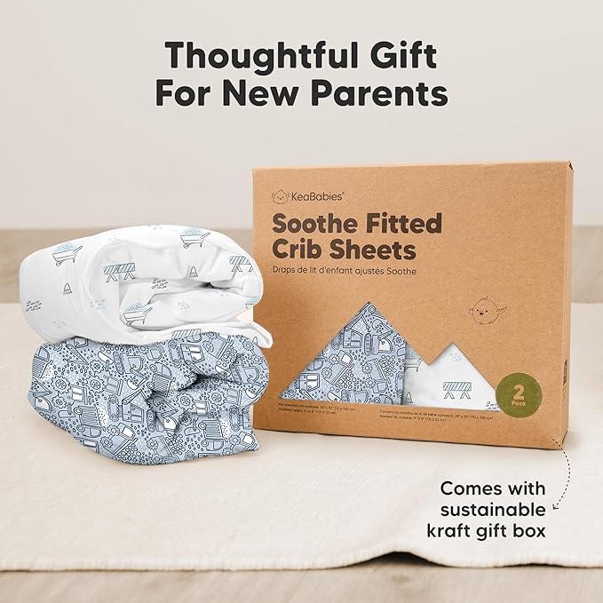 - 2-Pack Baby Crib Sheets - KeaBabies Soothe Fitted Crib Sheets for boys and girls; fit standard crib mattresses (52"x28" with height 3" to 8") perfectly, offering your baby a safe and restful sleep.