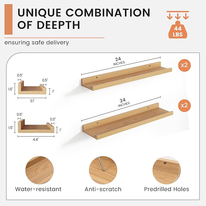 • 【Easy to Install】FLYJOE picture ledge shelves are quick and easy to install! Each set comes with pre-drilled holes and all necessary hardware, including a mini level for perfect alignment. With simple instructions, you can have your shelves up in minutes, allowing you to start decorating right away