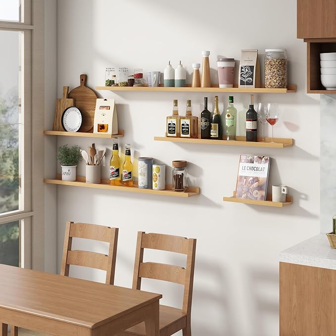 • 【Versatile and Multi-Functional】These shelves aren’t just for photos! FLYJOE ledge shelves can be creatively used as kids' bookshelves, display shelves for collectibles, spice racks in the kitchen, or even over-the-toilet storage in the bathroom. Their adaptability makes them a practical choice for any room in your home