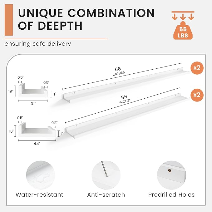 • 【Easy to Install】FLYJOE picture ledge shelves are quick and easy to install! Each set comes with pre-drilled holes and all necessary hardware, including a mini level for perfect alignment. With simple instructions, you can have your shelves up in minutes, allowing you to start decorating right away