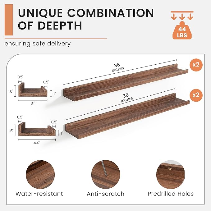 - 【Easy to Install】FLYJOE picture ledge shelves are quick and easy to install! Each set comes with pre-drilled holes and all necessary hardware, including a mini level for perfect alignment. With simple instructions, you can have your shelves up in minutes, allowing you to start decorating right away