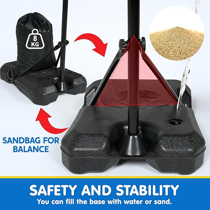 - Sturdy and Stable Design: The basketball set features a triangular base and support stand for enhanced stability. The base can be filled with water or sand to ensure stability during use. Suitable for both indoor and outdoor use, it is an ideal choice for active toddlers.