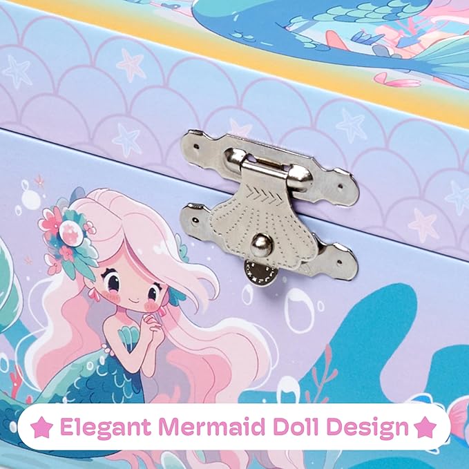 Jewelkeeper Girls Musical Jewelry Box - Durable Pine Fiberboard with Soft Pink Lining - Kids Jewelry Box - The Beautiful Dreamer Tune - Gifts for Girls - Mermaid Jewellery Box - 6x4x3.5in